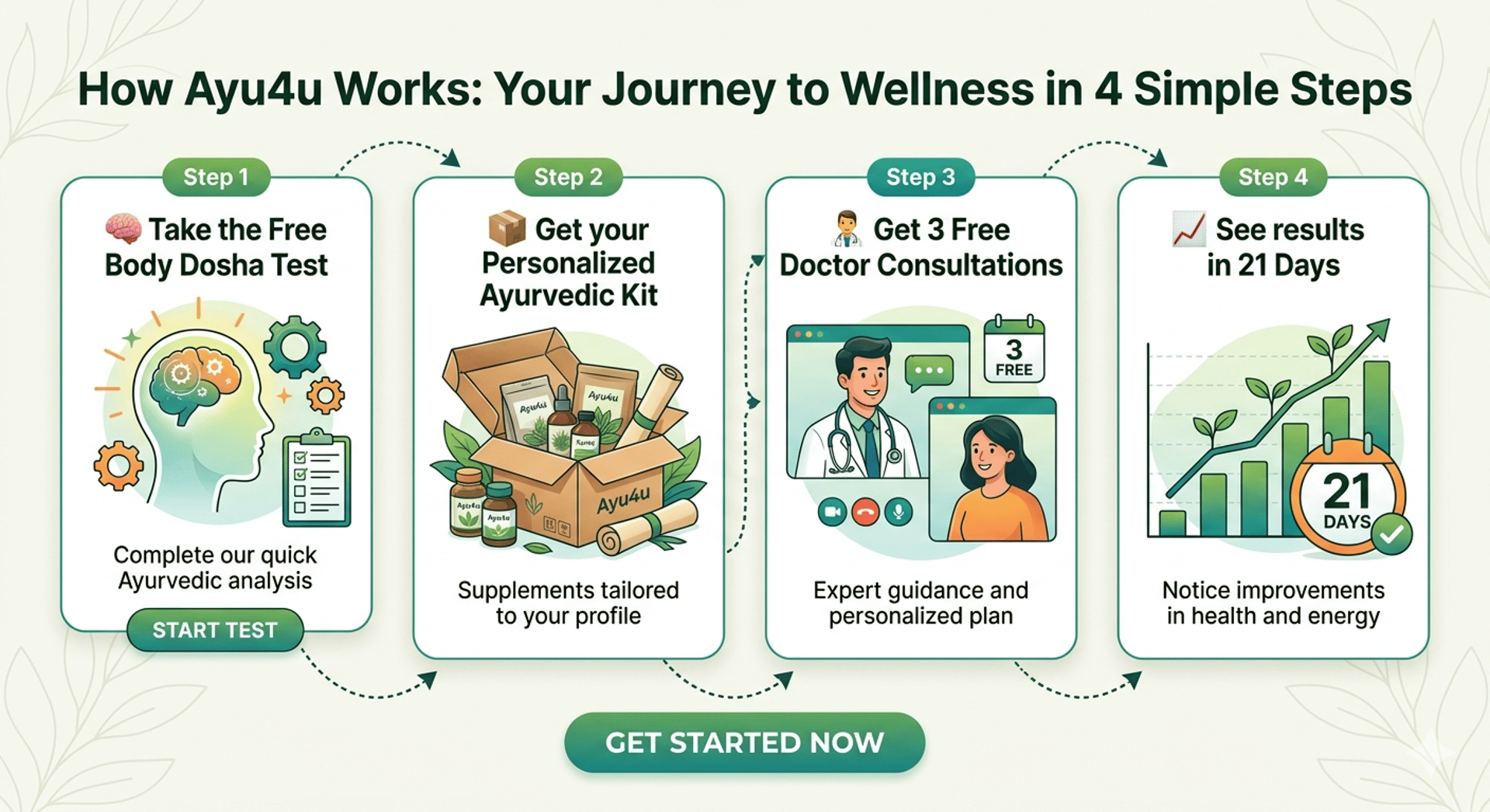 Ayu4u, India's 1st Personalized Ayurvedic Wellness Brand. Understand your Dosha and treat the Weight Loss or Hair Fall accordingly.